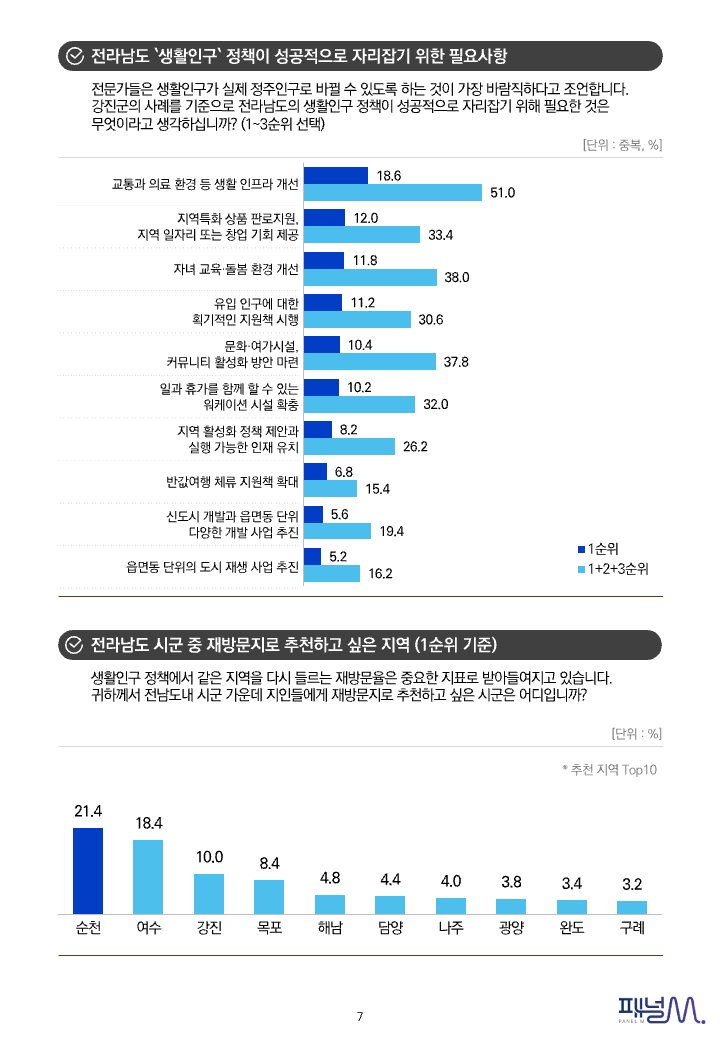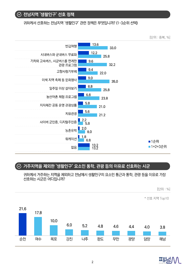 전남지역 생활인구 선호 정책
